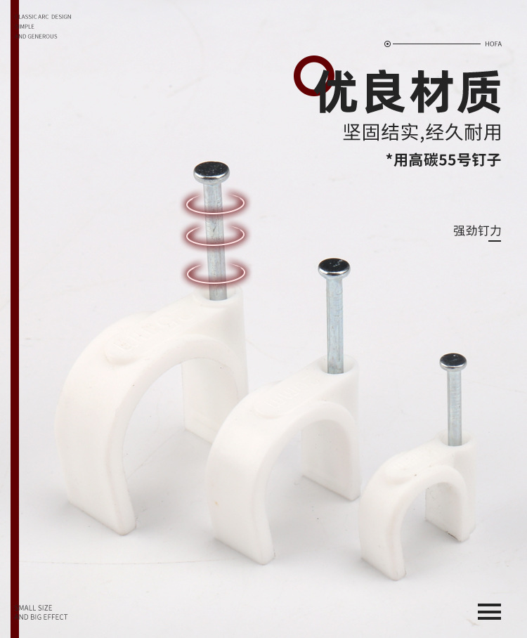 量大從優(yōu)PE白色料注射成型插釘式線扣鋼釘線扣方形扁形鋼釘線卡