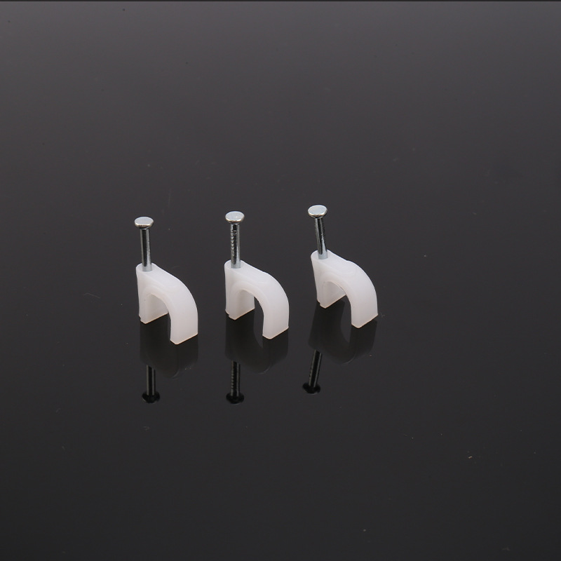 量大從優(yōu)PE白色料注射成型插釘式線扣鋼釘線扣方形扁形鋼釘線卡