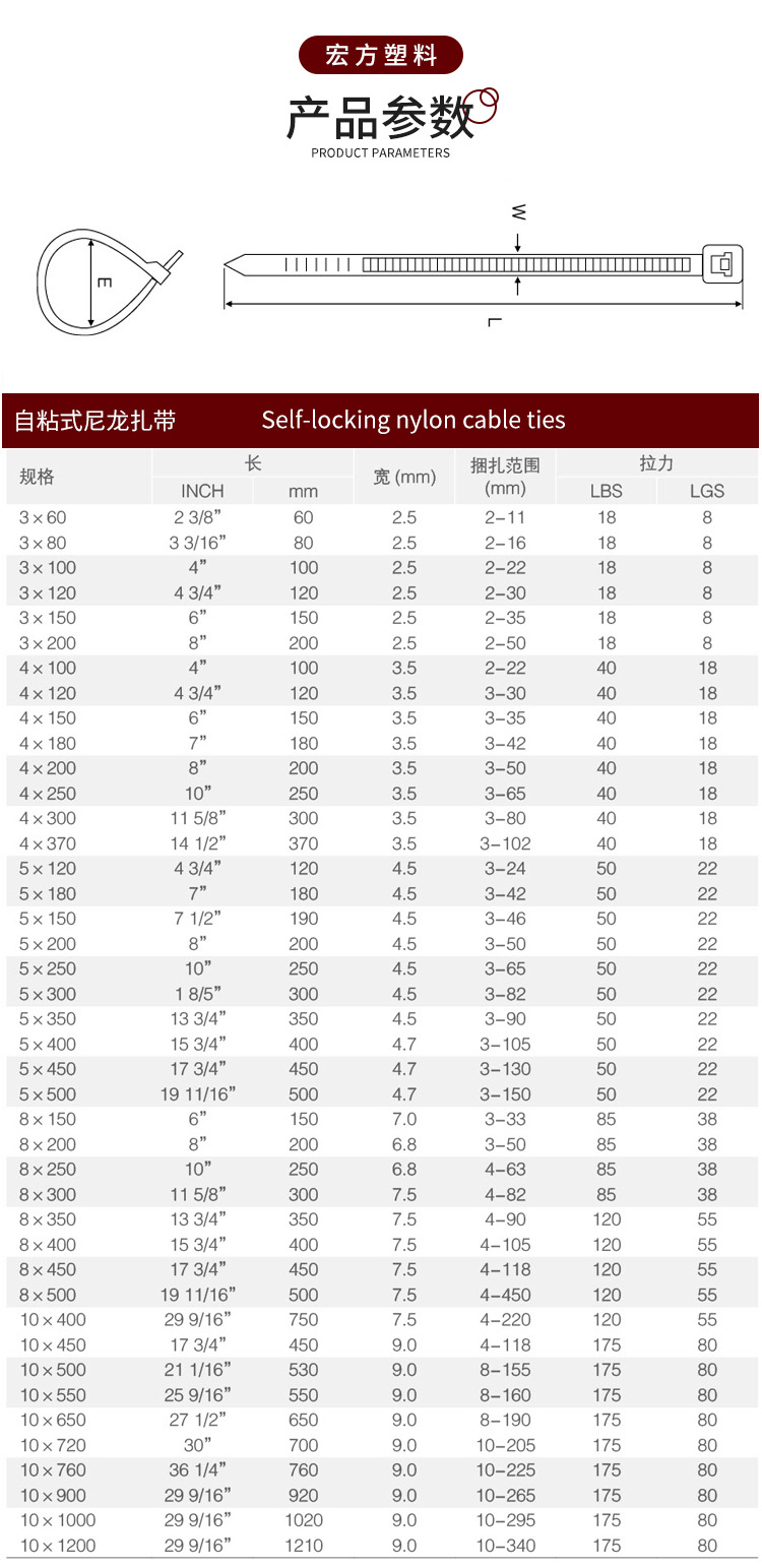 尼龍?jiān)鷰芰显鷰ё枣i式束線帶 電纜扎帶捆綁帶塑料捆綁扎線帶