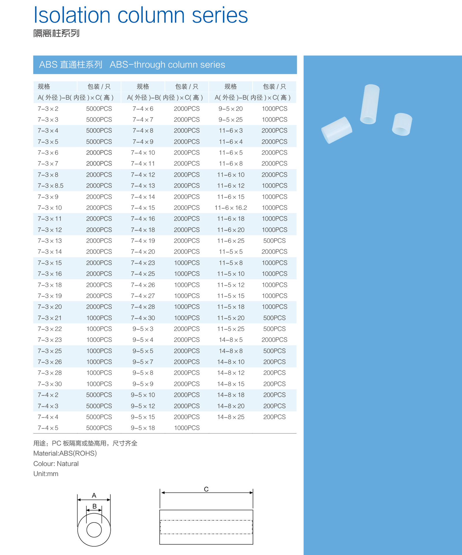 下一篇:ABS直通柱7-3系列 7-4系列 9-5系列 塑膠墊圈 直通墊高絕緣柱