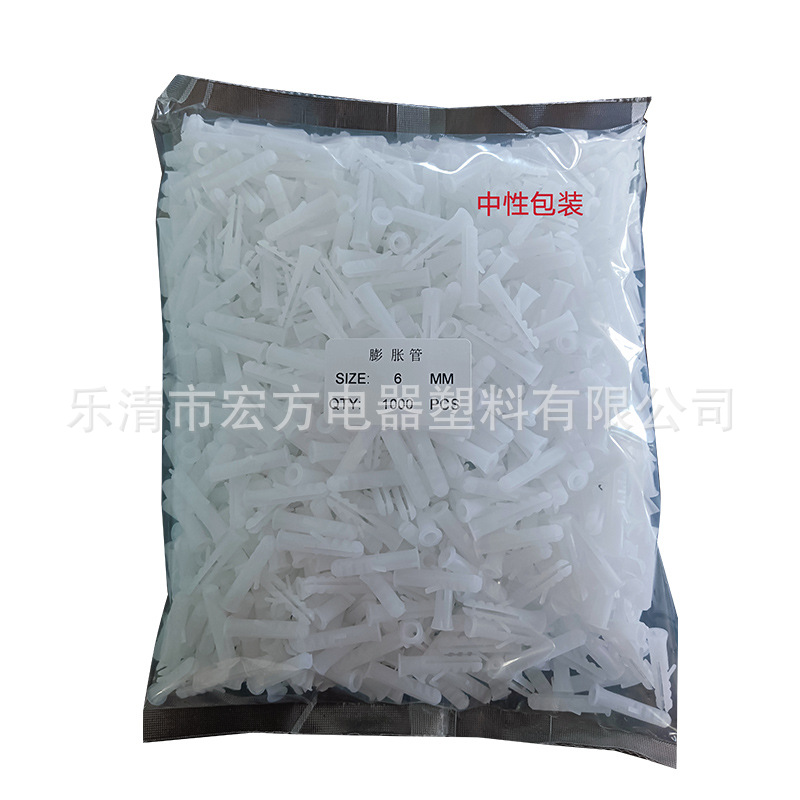 批發(fā)大方型膨脹管 6 白色塑料膨脹管 PE緊固件連接件 條形膨脹管