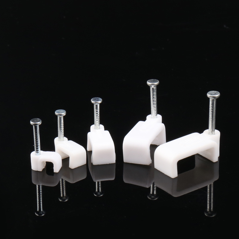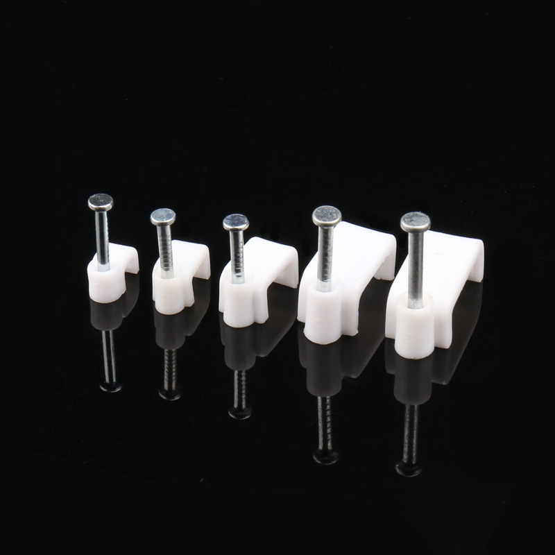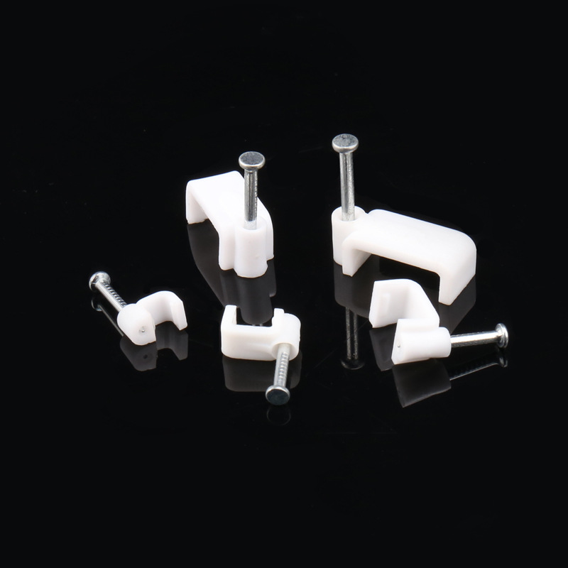 量大從優(yōu)PE白色料注射成型插釘式線扣鋼釘線扣方形扁形鋼釘線卡