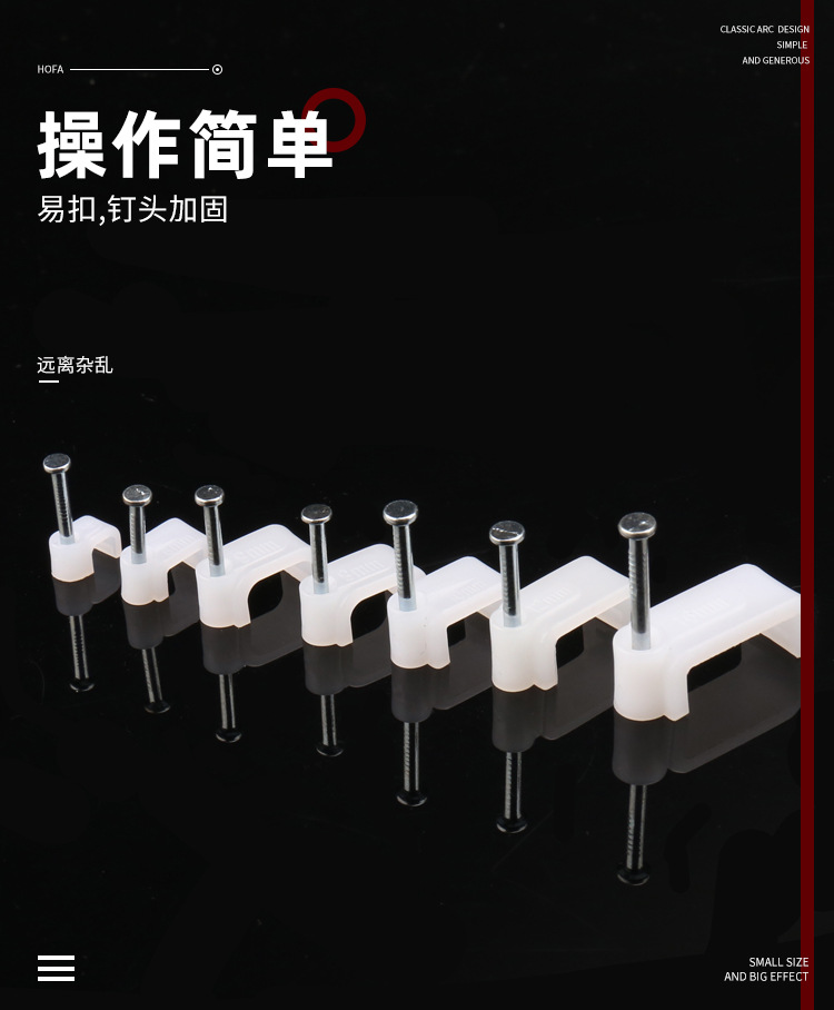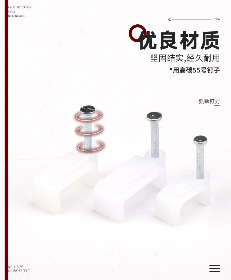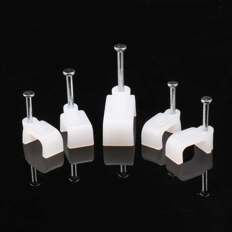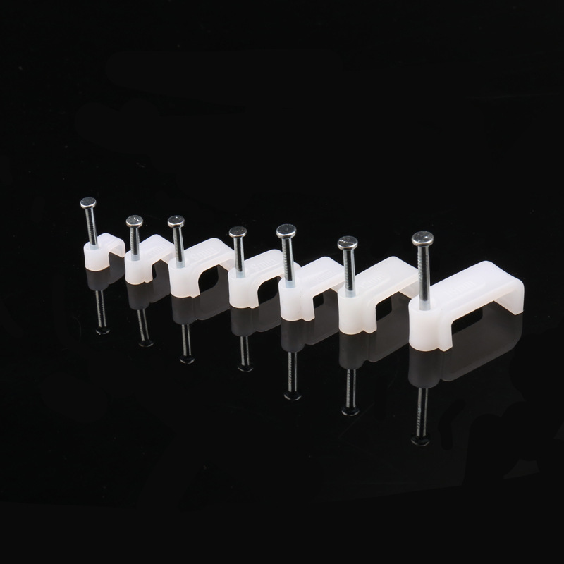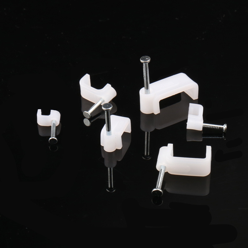 量大從優(yōu)PE白色料注射成型插釘式線扣鋼釘線扣方形扁形鋼釘線卡