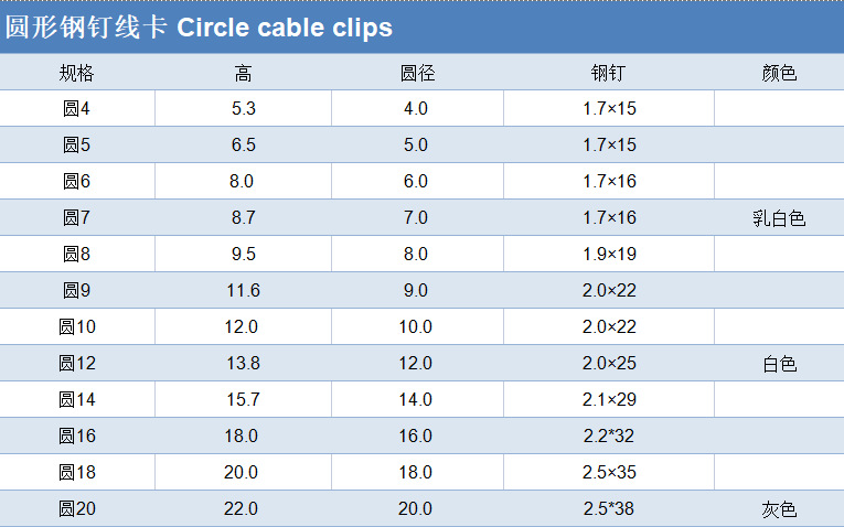 圓形鋼釘線卡PE白色灰色